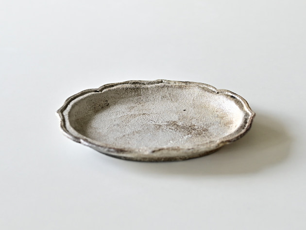 洋風な雰囲気のプレートですが、意外と和食にもあいます。ケーキ皿としてもちょうどよいサイズ。 化粧土を塗り、炭と一緒に焼成することで、味わい深い表情を作り出しています。 一枚ずつ発色が大きく異なることをご了承ください。 ごく小さく化粧土が剥がれ落ちている箇所がありますが、不良品ではありません。 ■サイズ:ヨコ18.3cm×タテ15.0cm×高さ2.2cm ※手作りの為、大きさ、形、色がひとつずつ多少異なることをご了承下さい。