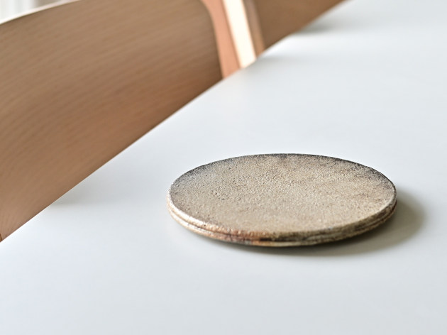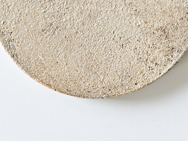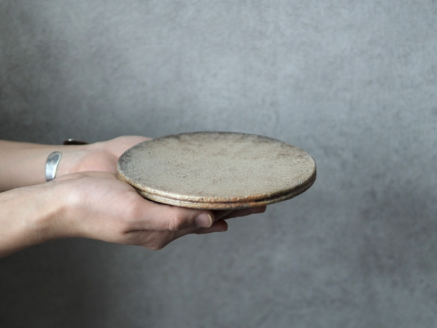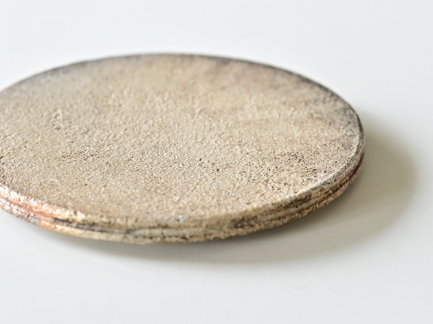 これほど真っ平なお皿もめずらしいかもしれません。 お料理にお菓子に、あるいは台皿として、いろいろ活躍してくれそうです。 化粧土を塗り、炭と一緒に焼成することで、味わい深い表情を作り出しています。 一枚ずつ発色が大きく異なることをご了承ください。 ごく小さく化粧土が剥がれ落ちている箇所がありますが、不良品ではありません。 ■サイズ:径14.5cm×高さ1.3cm ※手作りの為、大きさ、形、色がひとつずつ多少異なることをご了承下さい。