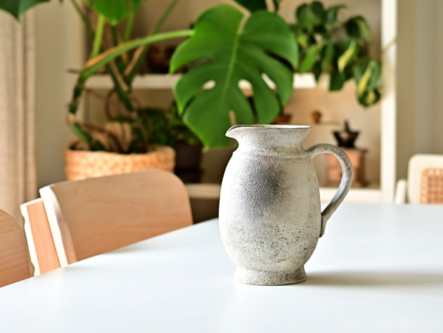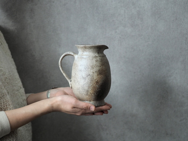 立ち姿の美しいジョグ。骨董品のようなテクスチャーです。容量は八分目で約680㏄。
