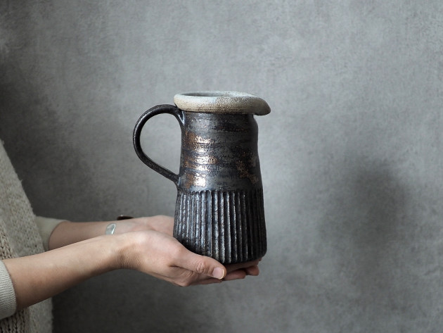 立ち姿の美しいジョグ。内と外で釉薬を掛け分けています。容量は八分目で約700㏄。