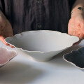 楕円の稜花形をした優雅な大鉢。盛り付けた料理が、とても品よく見えます。
