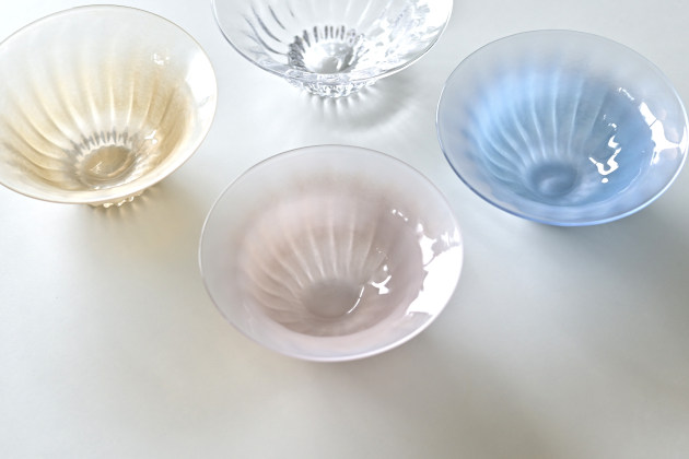 手作りのガラスは、サイズや形、発色にばらつきがあります。
