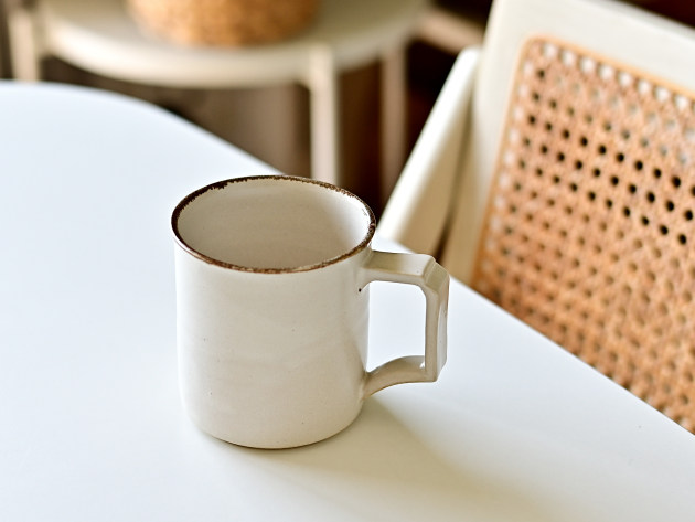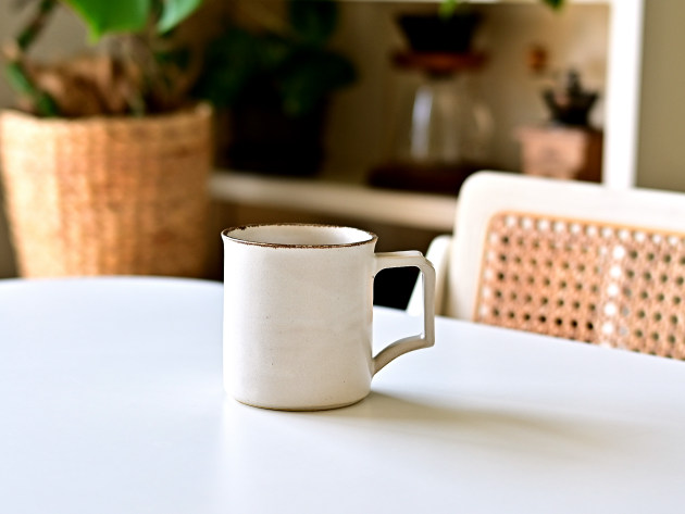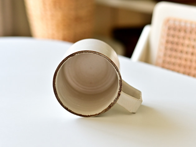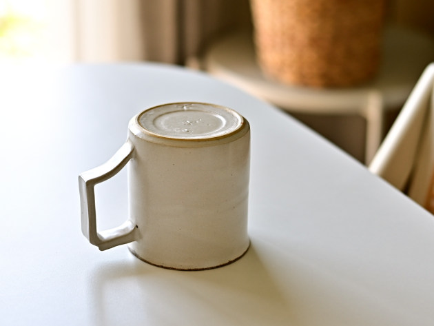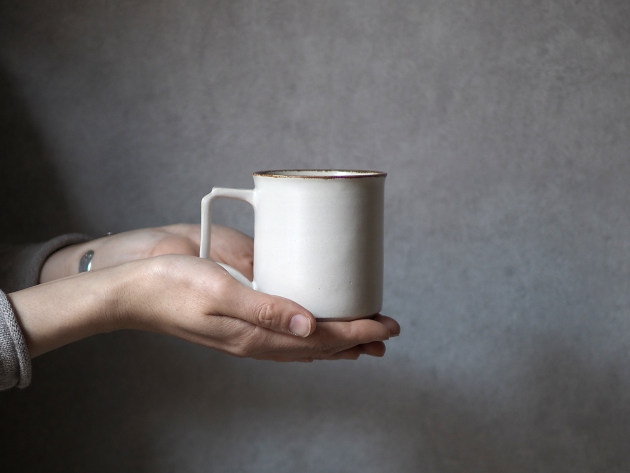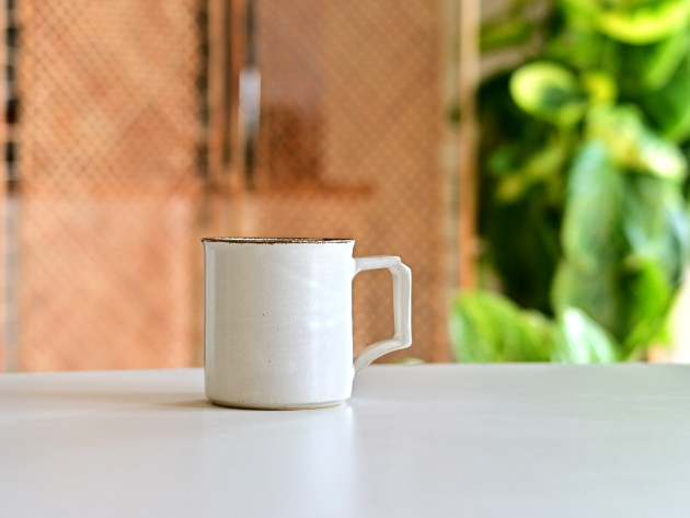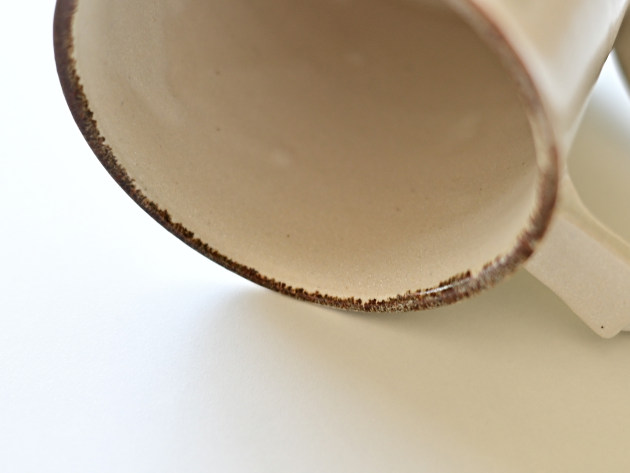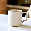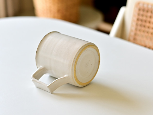 取っ手の形が印象的ですが、手によく馴染んで持ちやすいです。容量は八分目で約250cc。やららかなアイボリーの釉薬は、コーヒーにもよくあいます。焼成後に目止め処理を施してあります。陶器ですが、ほどんど染みることがありません。 ■サイズ:径8.5cm×高さ8.5cm(取っ手含まず) 250㏄ ※手作りの為、大きさ、形、色がひとつずつ多少異なることをご了承下さい。