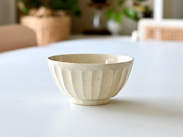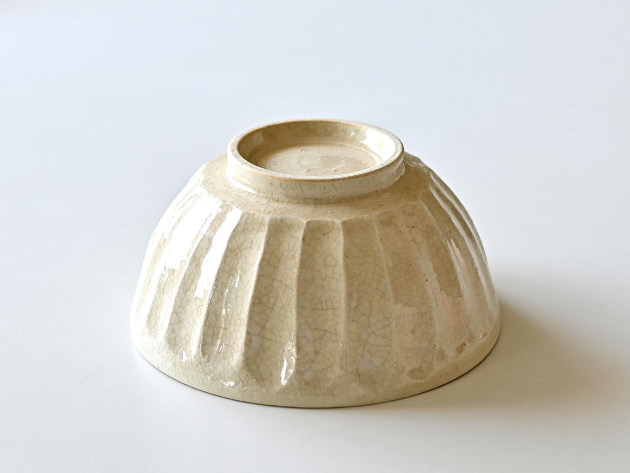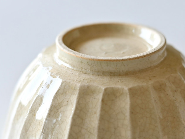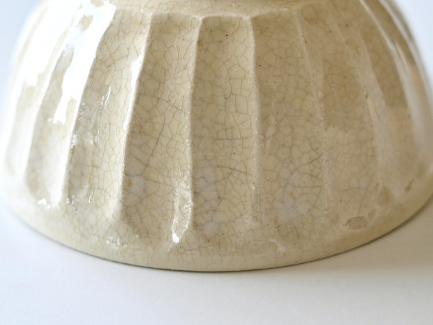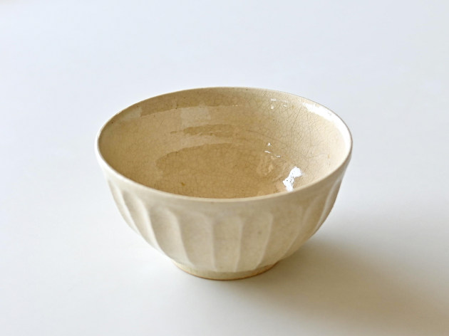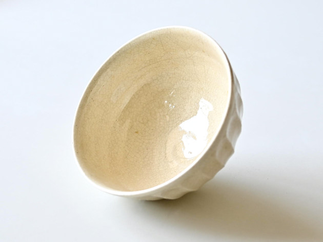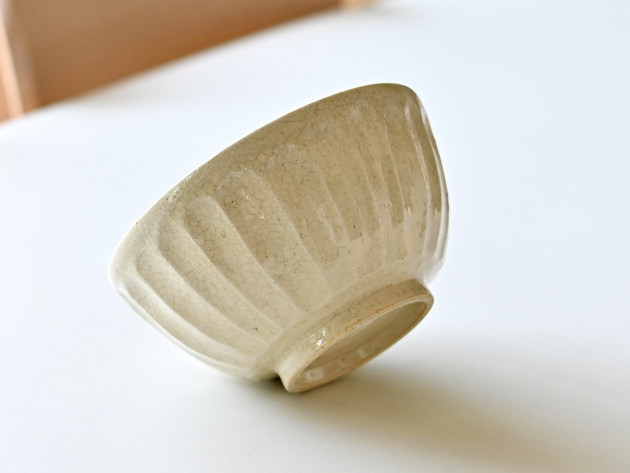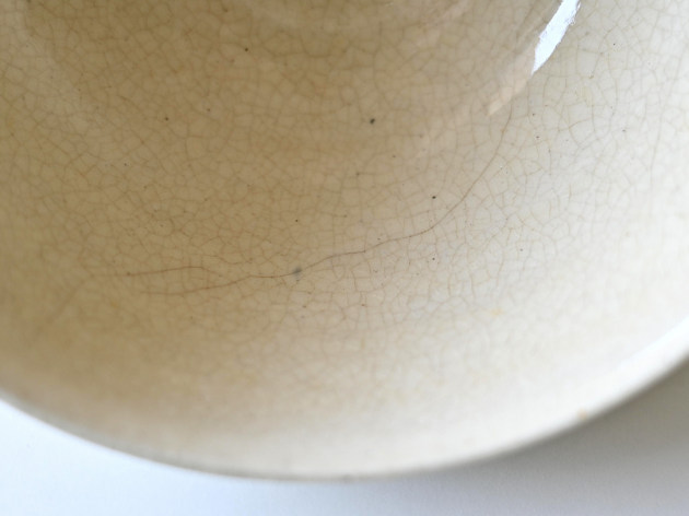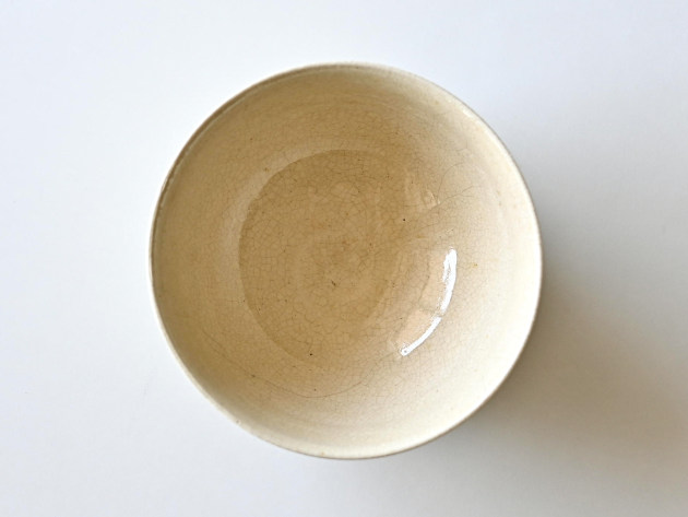細かい貫入が特徴のどんぶり。焼成後に、どんぐりの渋に漬けて染めています。