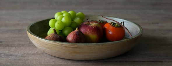 村上圭一 ハツリ目深鉢(クス・白/拭漆φ300*h55)